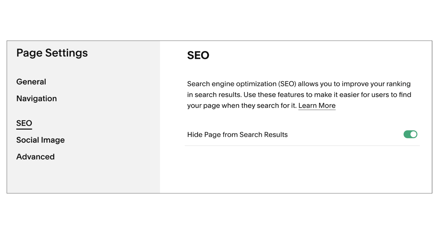 💡 Using Squarespace? Open the page settings and toggle ‘Hide page from search results.”’This is the same as applying a noindex tag.